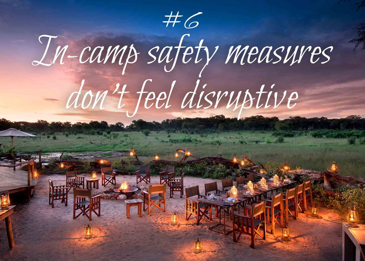 We only use intimate camps and lodges with a small number of tents, so it never feels busy, and you’re always able to social distance from other guests in the open-air common areas.