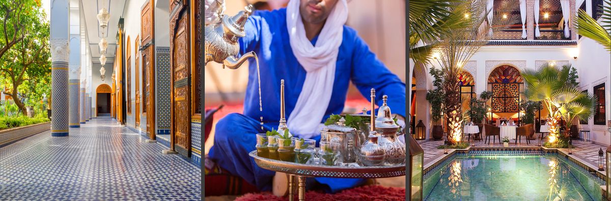 This is a celebration of the fascinating culture and history of Morocco. Discover the ancient city of Fez, a haven of traditional ways and artisan souks that continue to thrive to this day. Spend a night under the stars in a Berber-style desert encampment, complete with white canvas tents and sunrise camel ride through the dunes. Tuck your away into a tranquil palm oasis in the foothills of the Atlas Mountains for a few days of relaxation. Venture to the lively city of Marrakech, where Morocco's diverse modern culture has given rise to a vibrant dining and fashion scene.