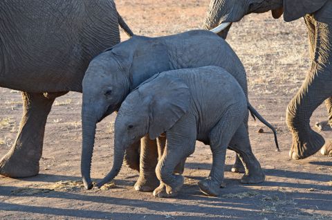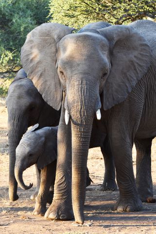 One of the best parts was the elephant population though. The demeanor of a reserve's elephants is a good indicator of how the land is managed. If they are skittish or aggressive toward the safari vehicles, it may mean that they have been hunted in the past, or have been harrassed by safari vehicles. (Even worse, it may mean that there is illegal poaching going on.) But in Mashatu, the elephants were divinely relaxed. They meandered right up to the vehicles, sniffing nonchalantly around us before digging into the tasty shrubs sticking out from under the wheels. On one evening game drive, we encountered a large breeding herd that had a dozen or so little ones. We watched them romp about their mothers' feet as they paraded by our parked vehicle. It was truly wonderful!
