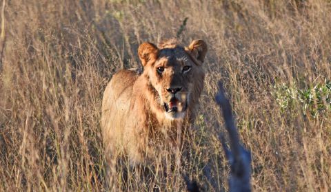 I have been on safari a thousand and one times. But every morning is different, promising something new, something special. You never know what it will be, but it is always something. On this particular morning we were identifying some little birds when out of the mist appeared a family of lions. There is something about the way a lion walks that is unlike any other animal. There is a regal assuredness to it. A quiet strength that lets you know they think they’re king of the savannah as well. We watched enraptured as their powerful paws silently parted the grass, each breath condensing in the sunlight of a cold morning.