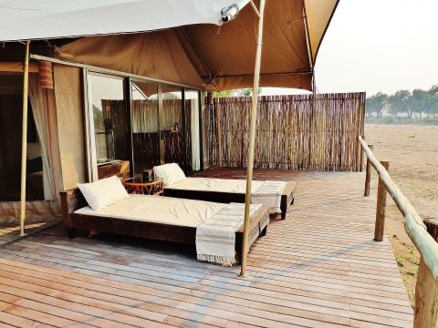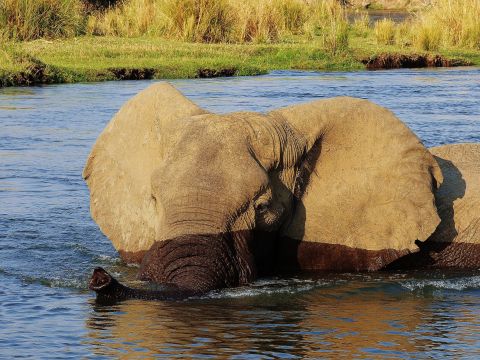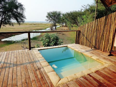 Anabezi Camp is a fun new luxury camp in a less crowded corner of Lower Zambezi National Park. The spacious tents were great! They danced the fine balance between having great amenities like open-air bathrooms, private plunge pool and elevated walkways connecting the camp without overdoing it. Those plunge pools were just the ticket as it is hot in Zambia in October. Real hot. Even the wildlife couldn't resist a dip in nature's plunge pools.