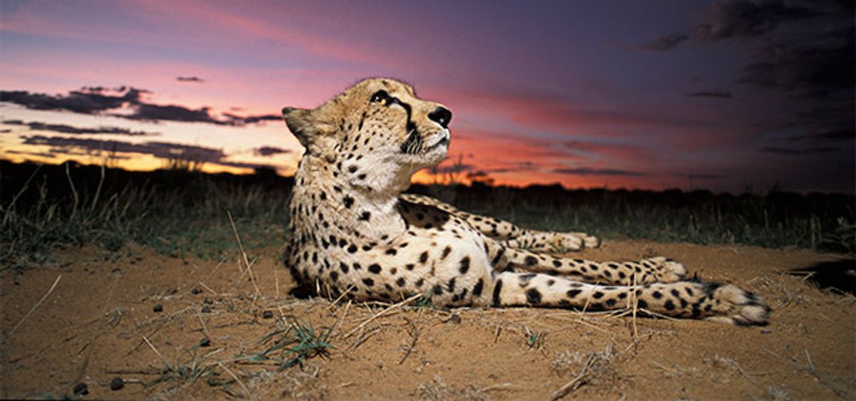 The fastest land animal in the world, the cheetah is a marvel of evolution. The cheetah can accelerate from zero to 40 mph in three strides, reaching their full speed of 70 mph in mere seconds. As they sprint, only one foot at a time touches the ground. Nearing full speed, the cheetah is running at about 3 strides per second. The cheetah's heart rate climbs from 60 to 150 breaths per minute during a high-speed chase, however they can run only 400 to 600 yards at this pace before they are exhausted.