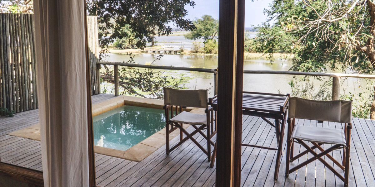 Anabezi Camp comprises of 11 luxury spacious tents on raised timber platforms at the edge of a ridge providing magnificent views of both the Zambezi River and Mushika River flood plain. The plain hosts year-round grazing and offers spectacular diverse game viewing from the comfort of your tent! Each tent has an indoor and outdoor bathroom, a spacious sitting area, two teak double beds, or one king sized bed within a well designed four-poster mosquito net, a private deck and a plunge pool set into the deck overlloking the wonders of the Zambezi.