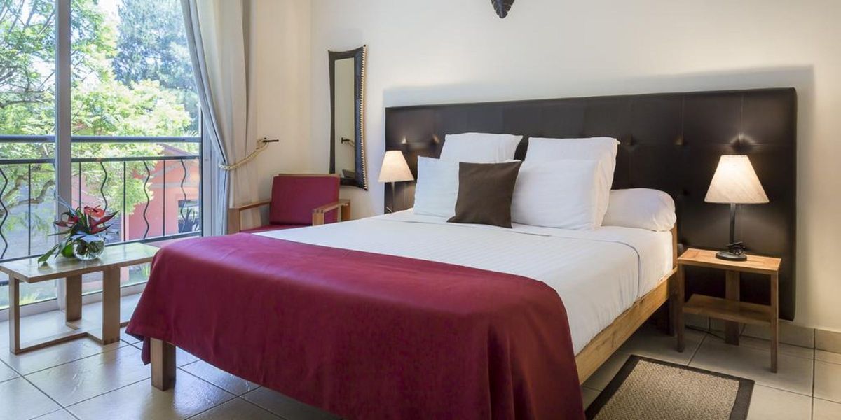 The Relais des Plateaux Hotel is set in a peaceful garden close to the international airport but within the city of Antananarivo. Jacaranda trees blooming with vibrant lavender flowers, delicate palms and lush greenery create a serene haven from the hustle and bustle of the city. The hotel wraps around an inner garden, so all rooms have a view over the beautiful wooded area.