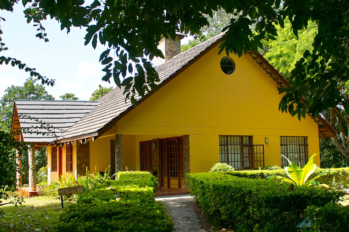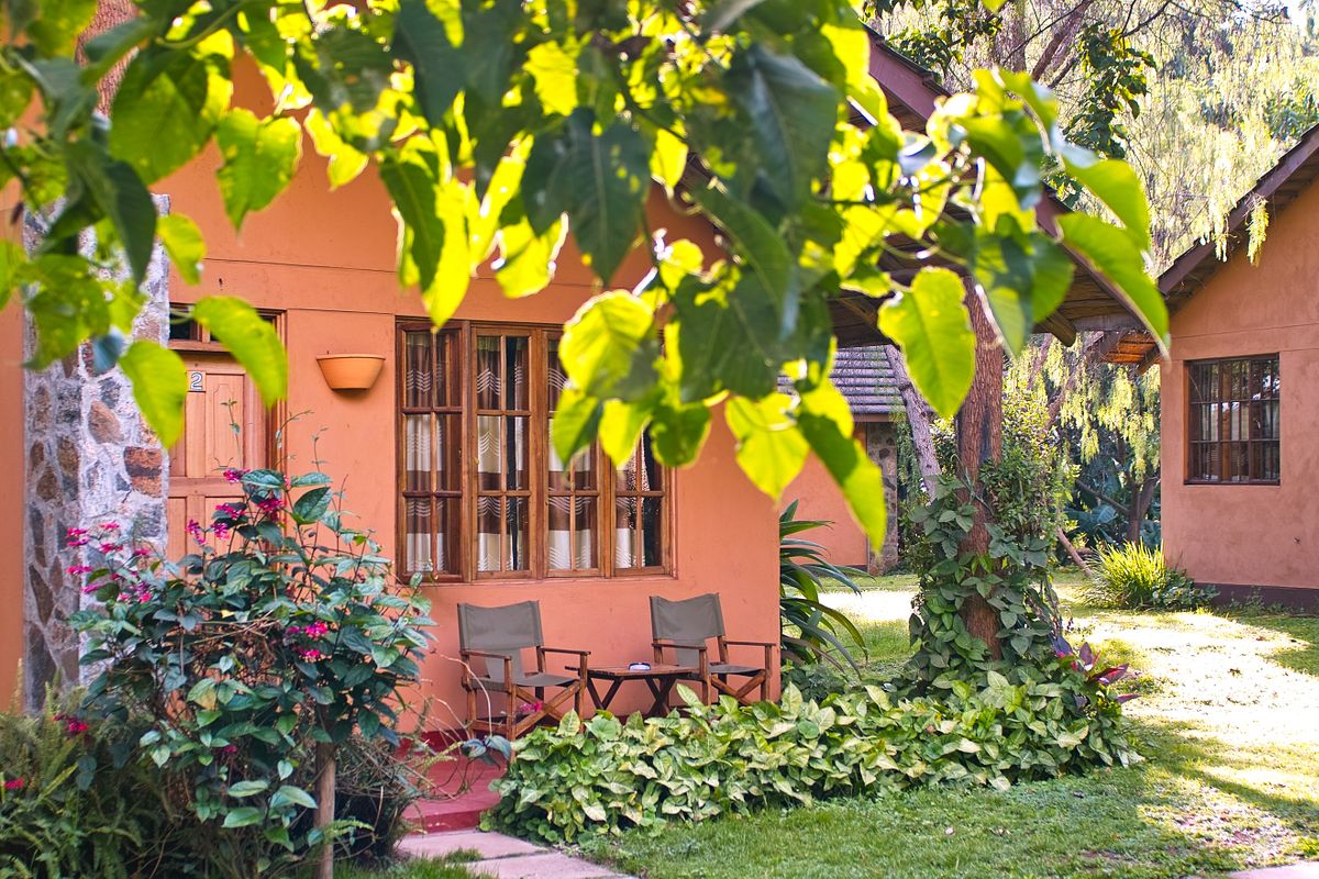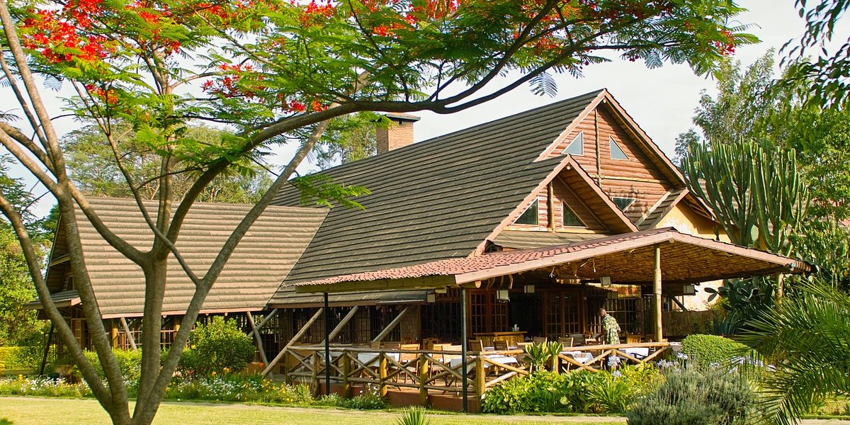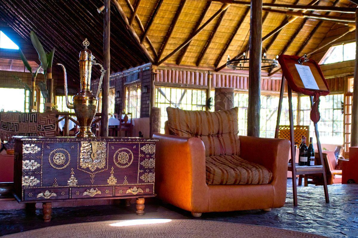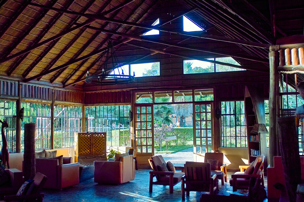 The main building with the resort facilities has an extremely comfortable lounge and bar area, as well as a reception area, with telephone/fax, internet, a boutique, and the restaurant and cloak rooms. A terrace restaurant with spectacular views of the mountains Meru and Kilimanjaro overlooks the tropical gardens and a large solar-heated swimming pool.