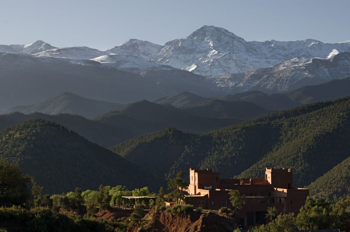 Kasbah Bab Ourika stands in an exceptionally beautiful landscape in the Atlas Mountains, just 35 km from Marrakech. On its hilltop, at the apex of the Ourika Valley, it looks down to the river, green fields, and groves of olives, oranges and lemons and up to the dazzling snowy mountains. Guests can relax in individually decorated rooms with their own terraces, or unwind by the secluded swimming pool. Above all the Kasbah offers peace and relaxation in spectacular surroundings, a memorable escape from the hustle of the Western World. The Kasbah is one of the most eco-friendly buildings in Morocco. Constructed principally from Pise (rammed earth), the traditional Berber building technique, it blends easily with rock and earth around it. All water at the Kasbah is recycled and used in the garden.
