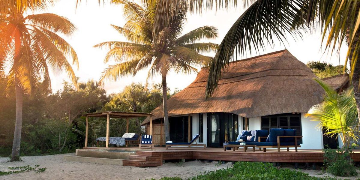 An idyllic luxury island getaway, Benguerra Island lies sheltered within a canopy of indigenous casuarina pine forest, which opens up to panoramic views of the Indian Ocean. The second largest island in the Bazaruto Archipelago, &Beyond Benguerra Island offers pristine beaches, unspoiled coral reefs teeming with marine life and excellent fishing opportunities. Light and airy, spacious casinhas and cabanas combine tropical chic with a distinct touch of Africa and the Mozambican coastline’s Portuguese heritage. Wide doors and windows allow for magnificent ocean views and private rim flow pools set on wide wooden decks provide a cool refuge. Colourfully ornamented, a traditional wooden dhow has found its final resting place on the beach, offering the ideal spot to indulge in an ice cold cocktail or a delicious meal of fresh, fragrant seafood. Local sailing boats carry you out to sea on dhow cruises and the billowing dunes and soft sands invite you to explore the marvels of this extraordinary island. After days filled with discovery, weary muscles relax and recharge under the magical attentions of the masseuses in the massage sala.