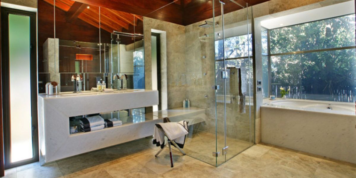 This villa sleeps eight guests in four bedrooms. The master bedroom is located on the upper level and boasts amazing sea views from the bedroom and bathroom. The other three bedrooms are located on the lower level and are also all sea facing. Access to the beach can be obtained via both levels. The fifth bedroom is a separate entrance with a ensuite and shower.