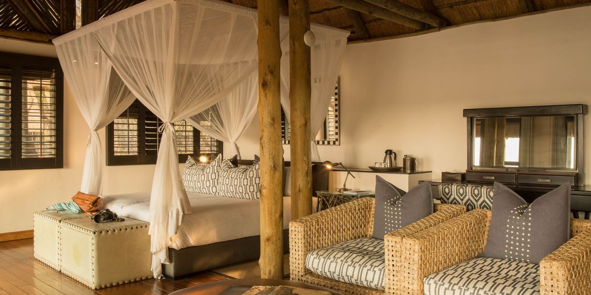 Perched on the banks of the Savute Channel, Savute Safari Lodge offers a great location from which to explore the nearby Savute Marshes. To ensure a private and relaxing environment, Savute Safari Lodge accommodates just twenty four guests in eleven thatched chalets built of local timber and one family room which consists of two double bedrooms. The chalets, which have been elegantly furnished in calm neutral tones to blend with the natural environment, feature expansive private decks, a combined bedroom and lounge area and en suite facilities.