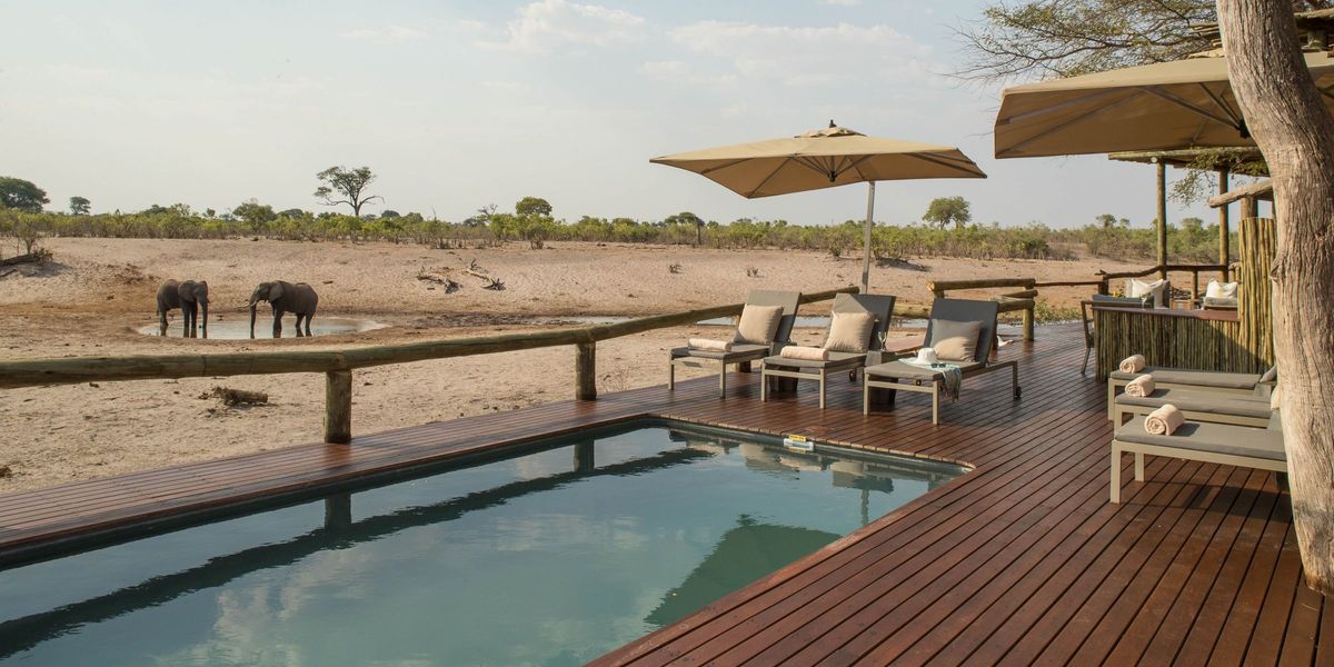 Sink into one of the numerous comfortable leather, wood or wicker sofas in the lounge – and library – or sip a cocktail in the stylish bar. All these facilities are situated in a beautiful two-story thatch-and-timber main building. Savute Safari Lodge offers a shaded viewing deck, an al fresco dining area and swimming pool with spectacular pool loungers – ideal for watching the varied wildlife – including the resident Elephants – as they make their way to the Channel to drink, bathe and play.