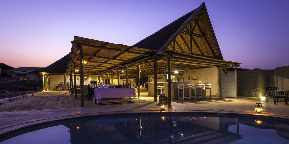 The camp has ten spacious chalets each with an en-suite bathroom including flush toilet and shower with hot and cold running water. The chalets are comfortable; constructed of canvas, wood, and adobe. They are raised up on a low decking, each having a private patio offering great views along the valley. The central area, under a high thatched roof includes a small library, the dining area, a welcoming fireplace and a small curio shop. Just a short walk from the main area is a lovely open campfire to be enjoyed on calm evenings. A feature of the camp is the unique rock pool.