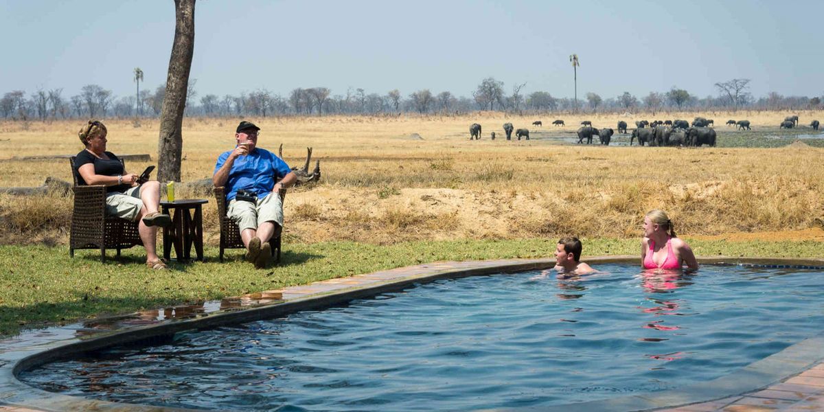 Named after the founder of Hwange National Park and its first warden, Ted Davison, this camp, with its 8 tents and a family tent, offers a wonderful bush experience. Both the tents and the separate main area, comprising a lounge, dining room, refreshing pool and open campfire area, look out over the productive waterhole.