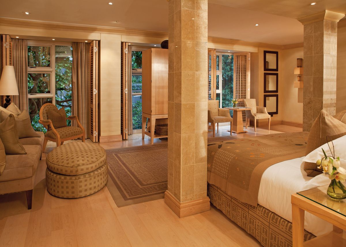 Accommodation at the Saxon is designed to satisfy the most discerning traveler. Each of the suites has large picture bay windows that look out over the rolling landscaped gardens or pool area, with latticed shutters ensuring quiet privacy. Each suite features has a king size bed, separate bathroom with bath and walk-in shower. The open plan layout includes a lounge and dining area with business desk.