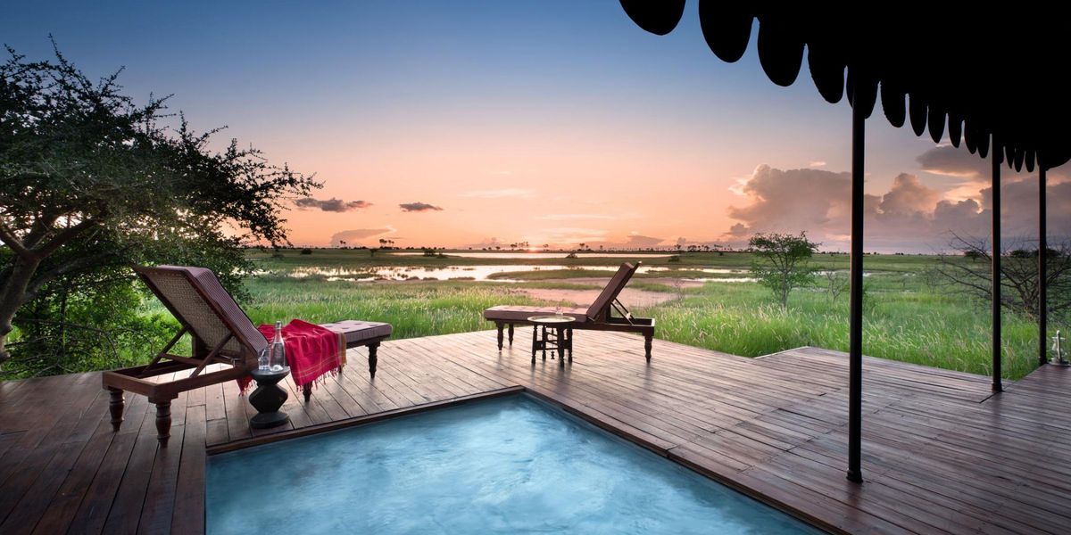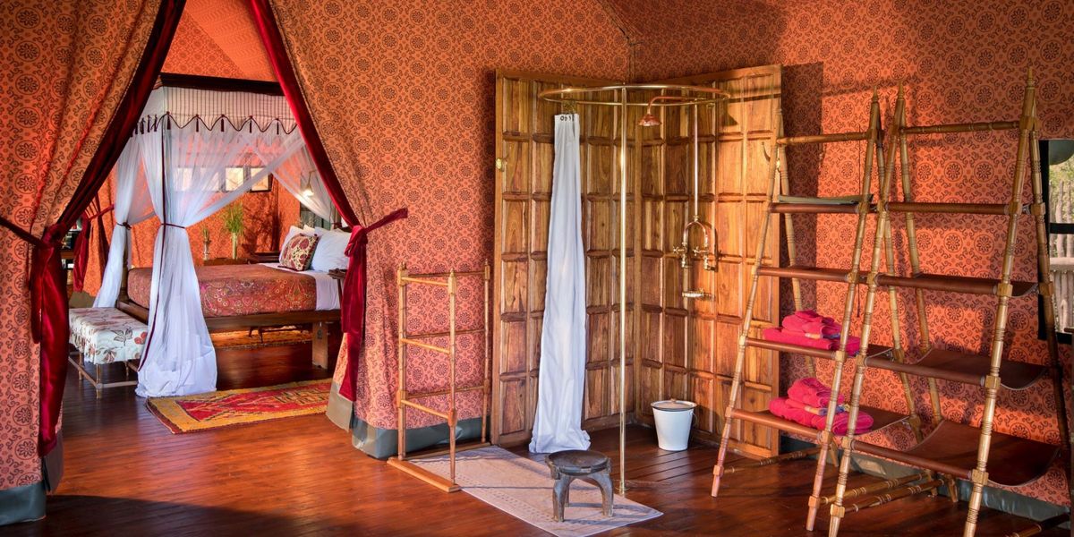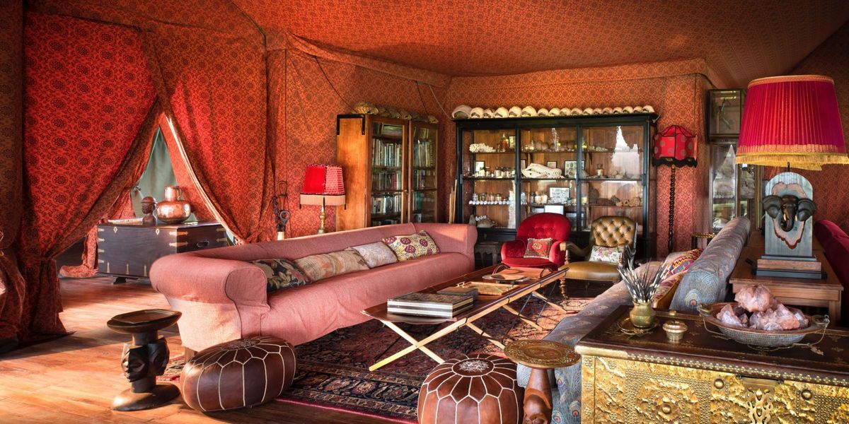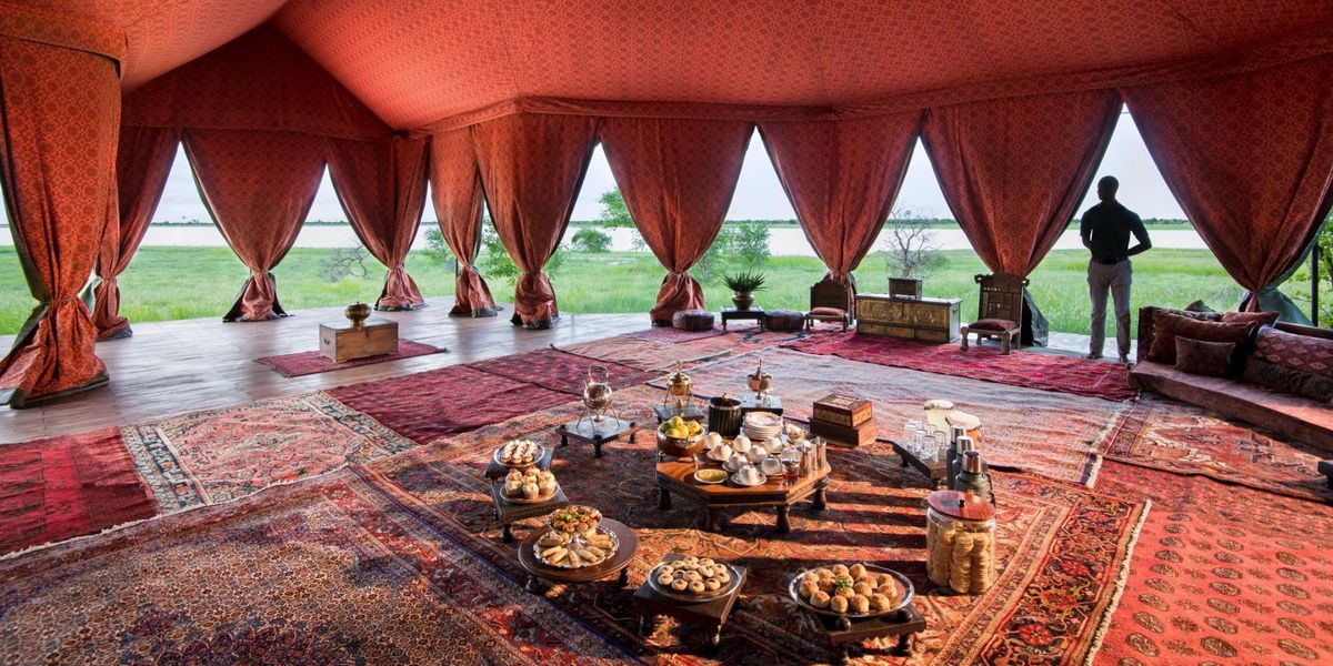 Jacks Camp is the vision of the savage beauty of a forgotten Africa and a bygone era of safari elegance. The Makgadikgadi Pans are the remnants of a once great lake. There are ten authentic tents with en-suite bathrooms and indoor and outdoor showers. They have a decadence of 1940's safari elegance, decorated with rich fabrics, European and African art pieces and safari-inspired furniture. The Camp also has a unique national museum, library, pool pavilion and plunge pool. Covered verandas with sunloungers offer spectacular vistas of this unique ecosystem.