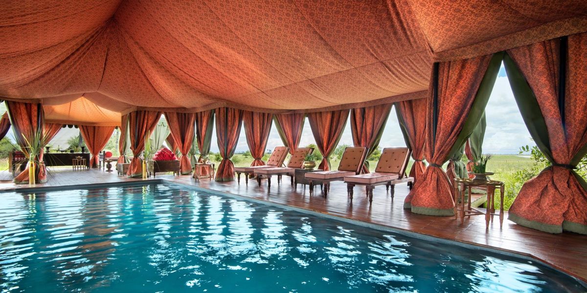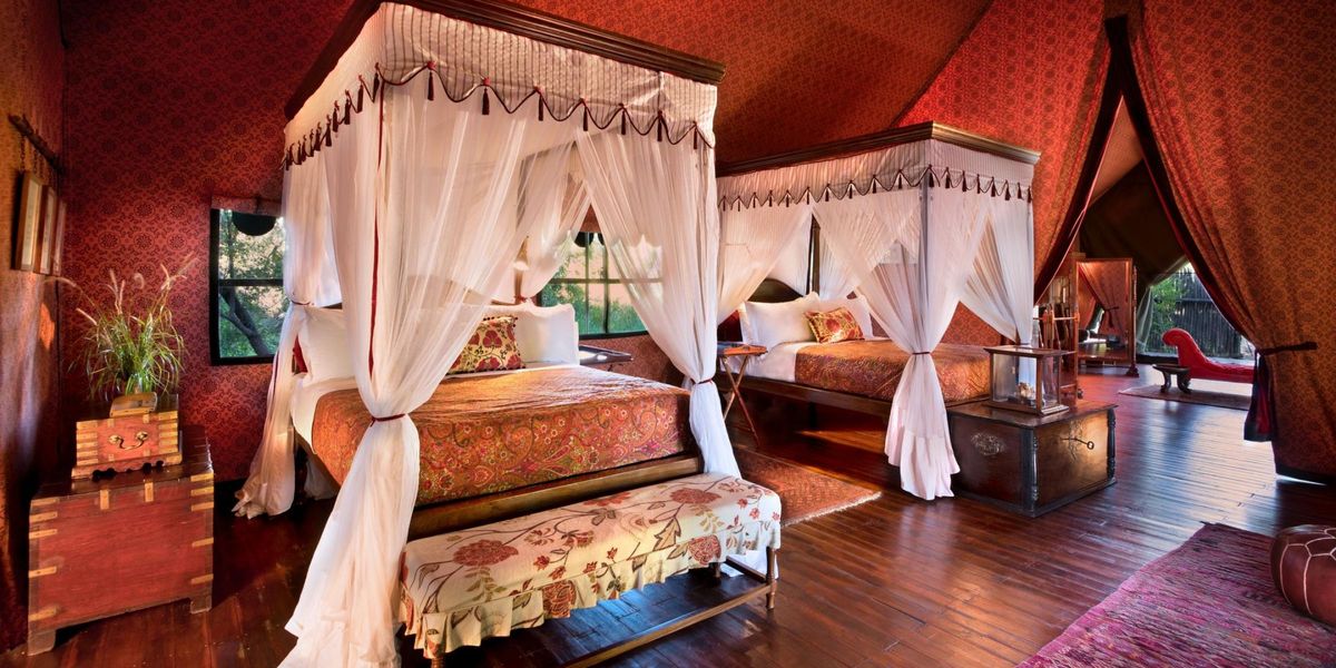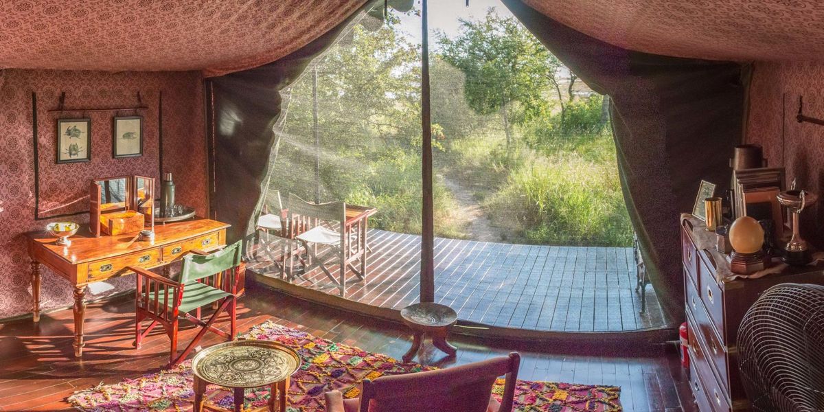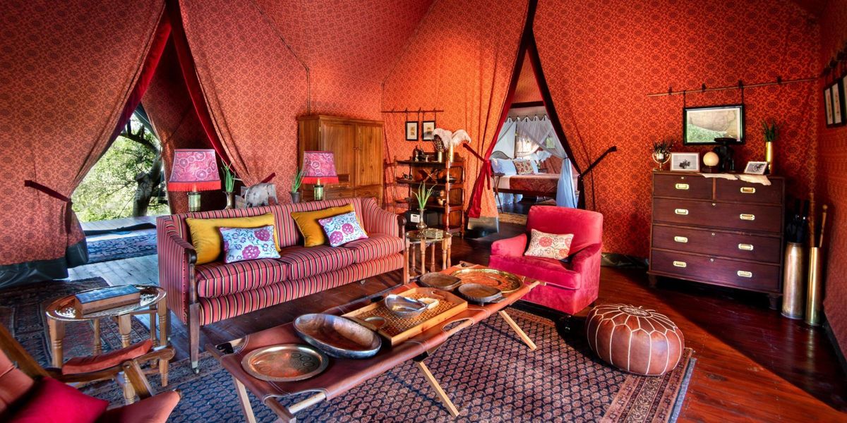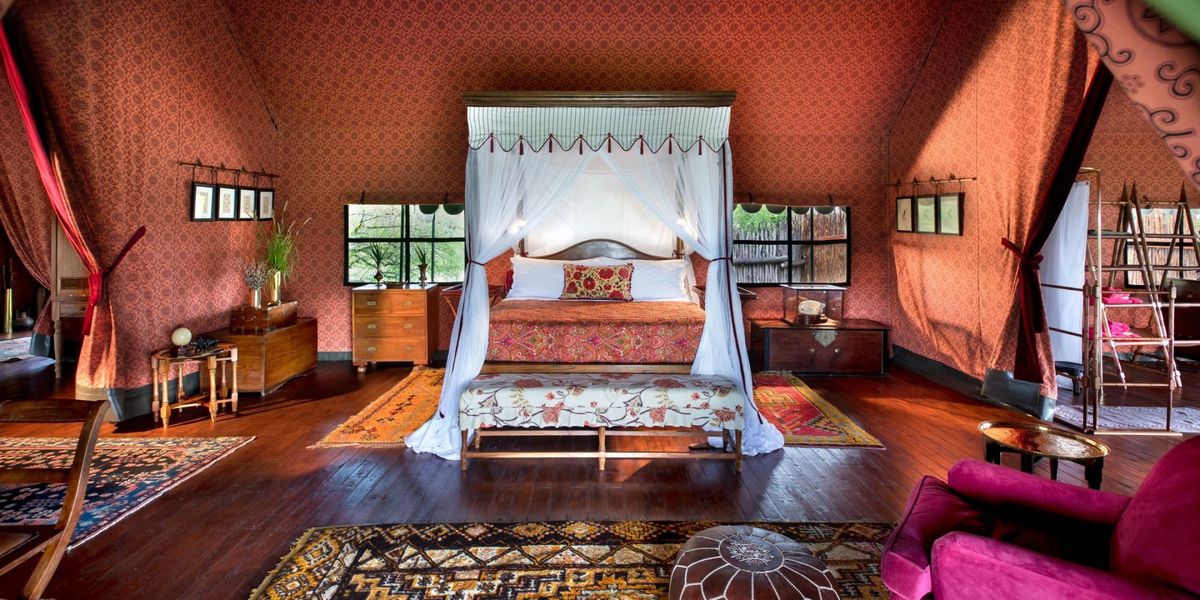 Jacks Camp is the vision of the savage beauty of a forgotten Africa and a bygone era of safari elegance. The Makgadikgadi Pans are the remnants of a once great lake. There are ten authentic tents with en-suite bathrooms and indoor and outdoor showers. They have a decadence of 1940's safari elegance, decorated with rich fabrics, European and African art pieces and safari-inspired furniture. The Camp also has a unique national museum, library, pool pavilion and plunge pool. Covered verandas with sunloungers offer spectacular vistas of this unique ecosystem.