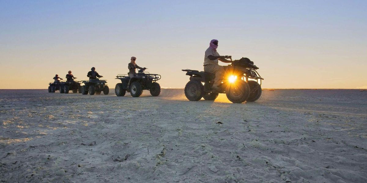 A typical visit to Jack's Camp starting with a morning walking with Zu/’hoasi Bushmen trackers, then travel on quad bikes across the pans and watch the sun set and the stars rise. Early in the morning, comb the edge of the extinct lake shore to find some of the many stone tools and fossils that litter the pan surface and learn of the origins of early man. Return to camp for a delicious brunch. After tea, head off in search of some unique desert species such as aardvark, bat eared foxes, aardwolves, and the elusive brown hyena, which is the third rarest large carnivore in Africa, with only about 8,000 in the wild. Go for a walk across the pans with a gang of habituated, but wild, meerkats. For a cultural twist, visit a remote cattle-post to learn about the traditional culture of the Batswana people.