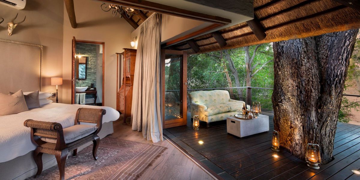 A sparkling swimming pool and sundeck overlook a natural riverine woodland, ideal for avid birdwatchers, while a tranquil massage sala and a well-equipped fitness room can be enjoyed in between game drives. Evening dinners are set in the elegant candlelit courtyard or an African feast in the open-air traditional boma. Enjoy a variety of activities such as twice-daily game drives with intimate wildlife encounters, interpretive bush walks, tracking and photographic safaris and conservation experiences including rhino notching.