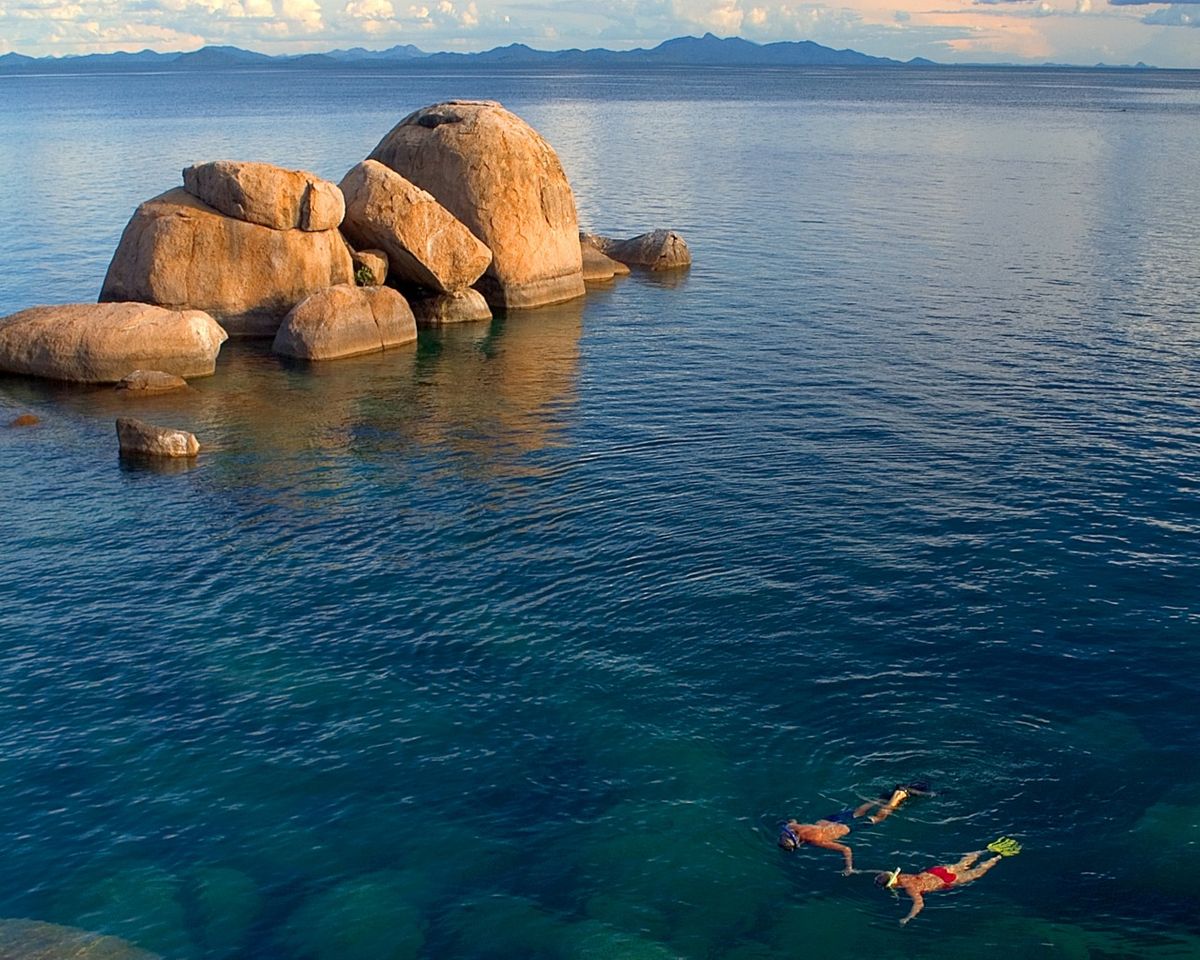 Mumbo Island is an exclusive camp situated on a pristine and otherwise-deserted tropical island floating on the clear waters of Lake Malawi. The crystal-clear, warm waters of Lake Malawi National Park are the first in the world set aside for the protection of freshwater fish. With over 2000 species present, this region of Lake Malawi is often considered the best freshwater diving and snorkeling location on the planet.