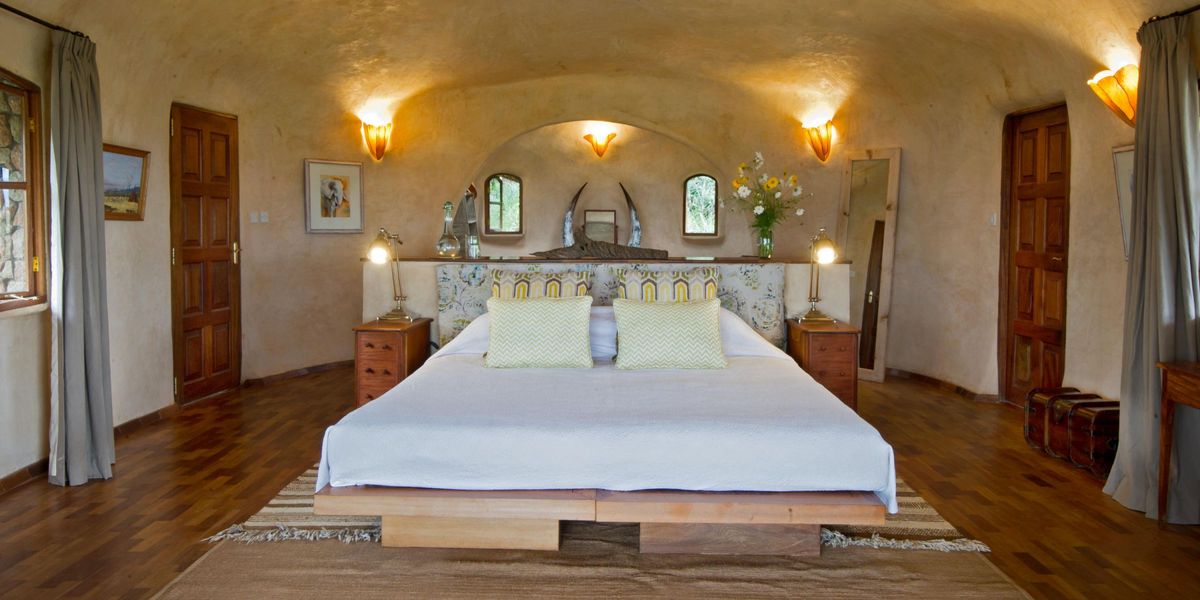Lewa House's main building with a lounge and dining area, opens up to the charmingly furnished veranda with its own special vista across the plains of Northern Kenya. A short walk away there are four spacious rooms (earth pods) and three large guest cottages and one family cottage. All the rooms and cottages have en-suite bathrooms, apart from the family cottage, which has a shared bathroom. They all have a private veranda where guests can relax in the cool of the evening to enjoy the starlit African skies. A large swimming pool overlooking the waterhole is also yours to enjoy.