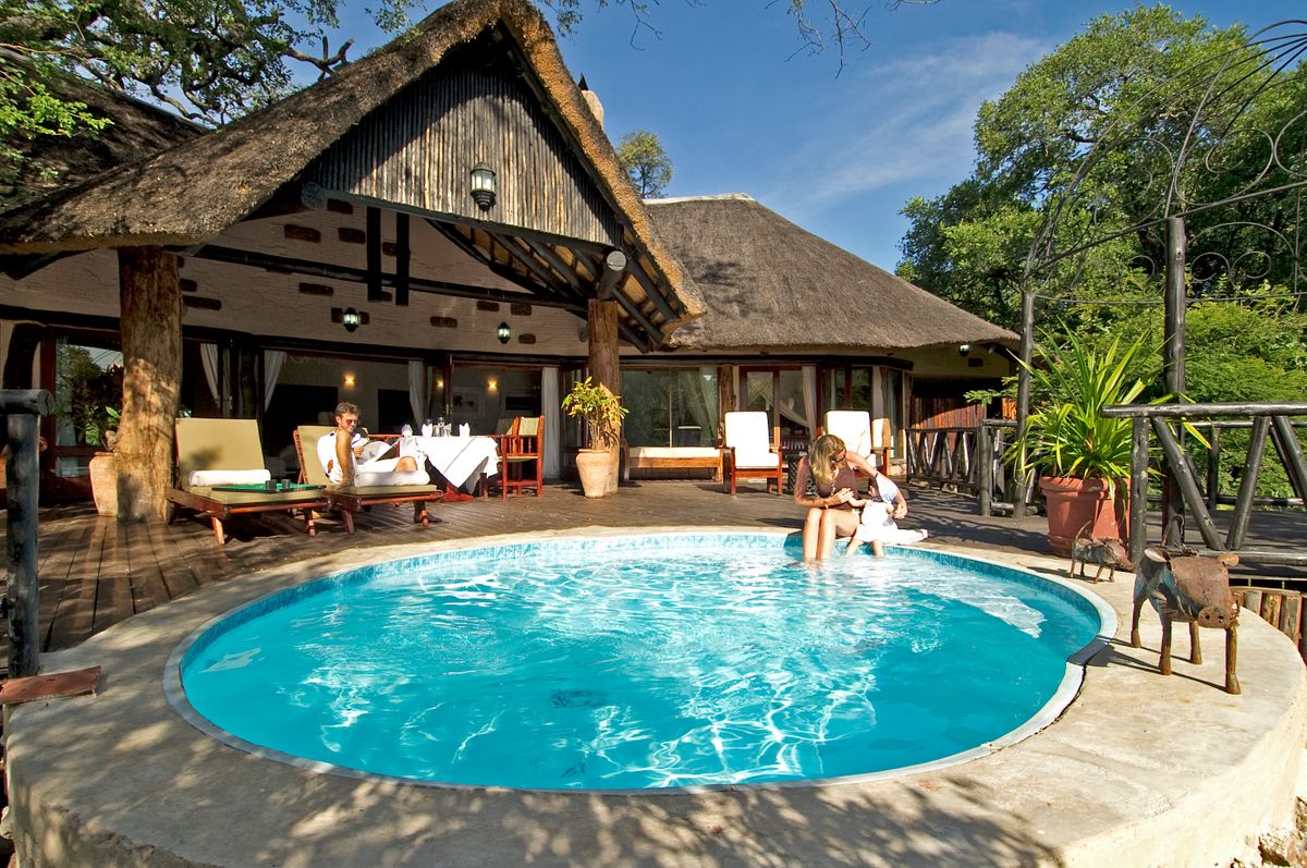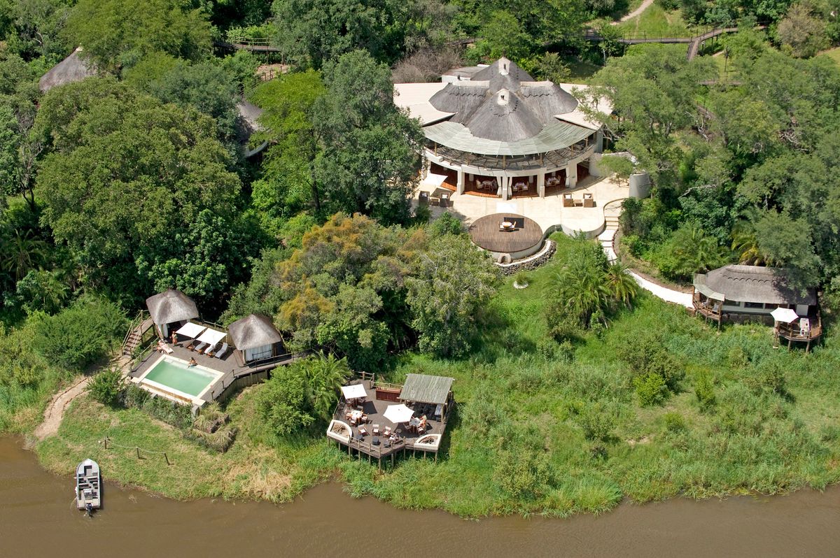 The main lodge building features a spectacular raised bar/lounge deck, open air dining area, swimming pool and lawns sweeping down to the waters edge. Other facilities include a curio shop, conference facilities, and evening campfire pit. The Safari Spa is available for guests to relax and unwind after a long day in the bush.