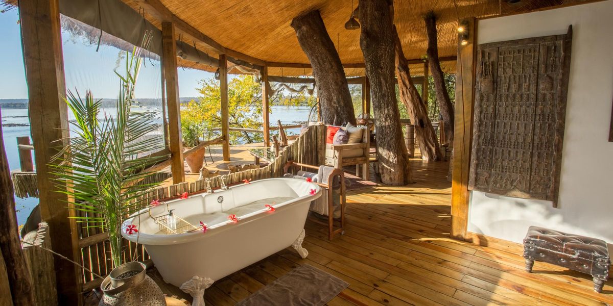 There is no set pattern to days at Tongabezi. Guests can do as much or as little as they wish, with wildlife drives in Mosi-oa-Tunya National park, bush walks, community visits and boating trips on the Zambezi all included in the price. Victoria Falls can be viewed on foot in the national park, from inside the gorge, from Livingstone Island and from the air. Livingstone and the Victoria Falls environs offer many optional activities. Tongabezi Lodge offers private dinners on a floating raft on the river as well as a variety of spa treatments.
