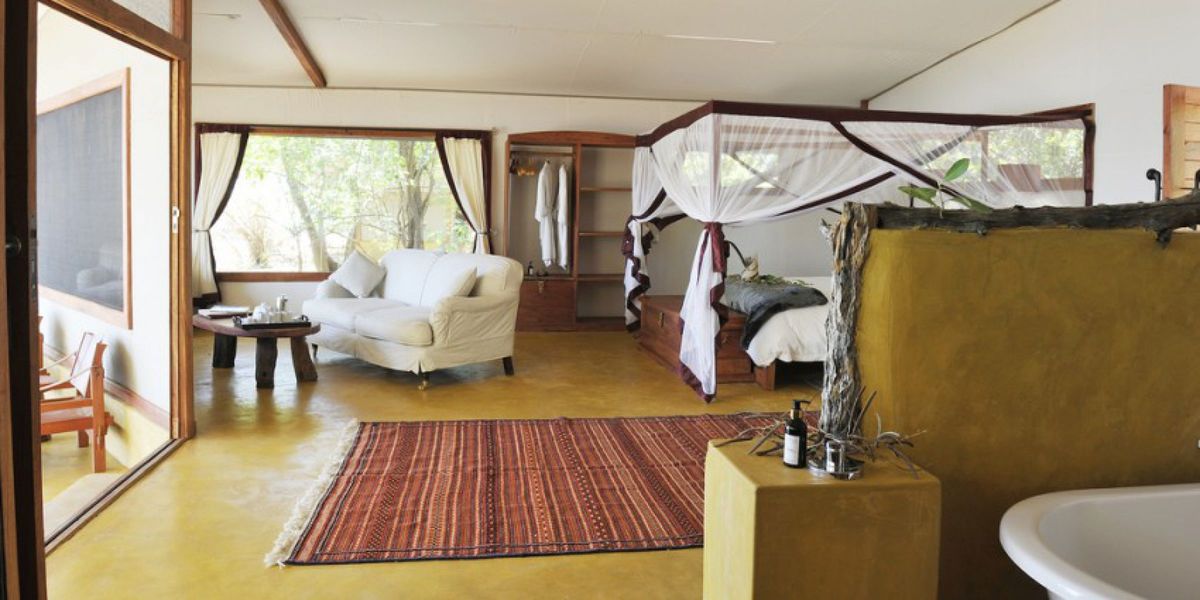 Potato Bush Camp lies adjacent to its sister camp, the world-renowned Sausage Tree Camp. With a stunning panoramic view overlooking the Zambezi River and escarpment, this site is nestled under Mahogany, Sausage, Winter Thorn and Acacia Tortillas Trees, which provide excellent shade. Potato Bush Camp is comprised of three well-appointed Canvas and Rosewood Safari Tents and also a 2-bedroom Family Tent. To complement the accommodation there is an open plan dining, bar and lounge area, which is accessed by all four Tents by way of raised timber boardwalks. This also enables the camp to stay open from the 1st of April through to early January, when the heavy rains really start. The camp hugely benefits from the nearby strong foundations, infrastructure and service levels that have been built up over the past 17 years by Sausage Tree Camp.