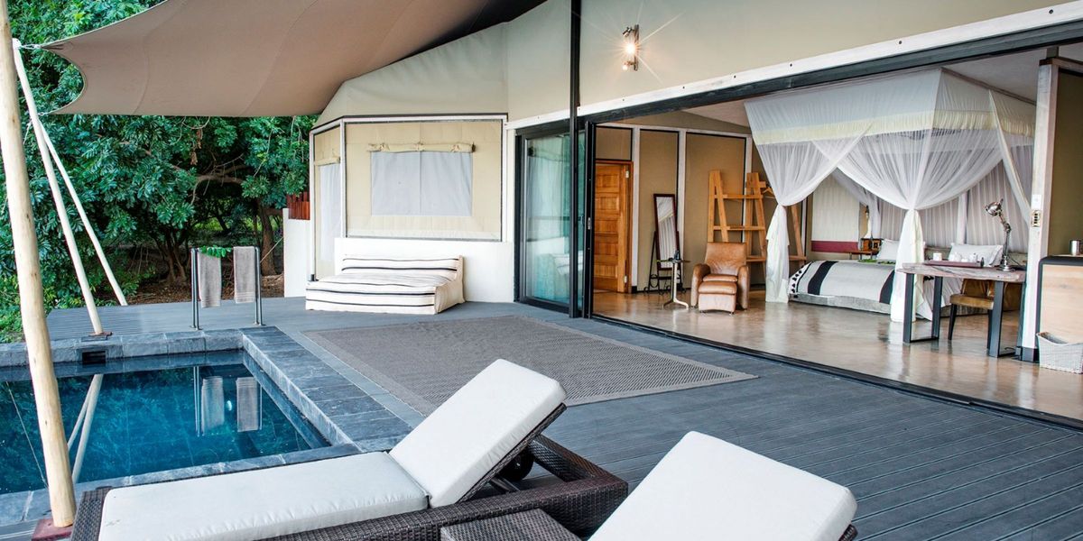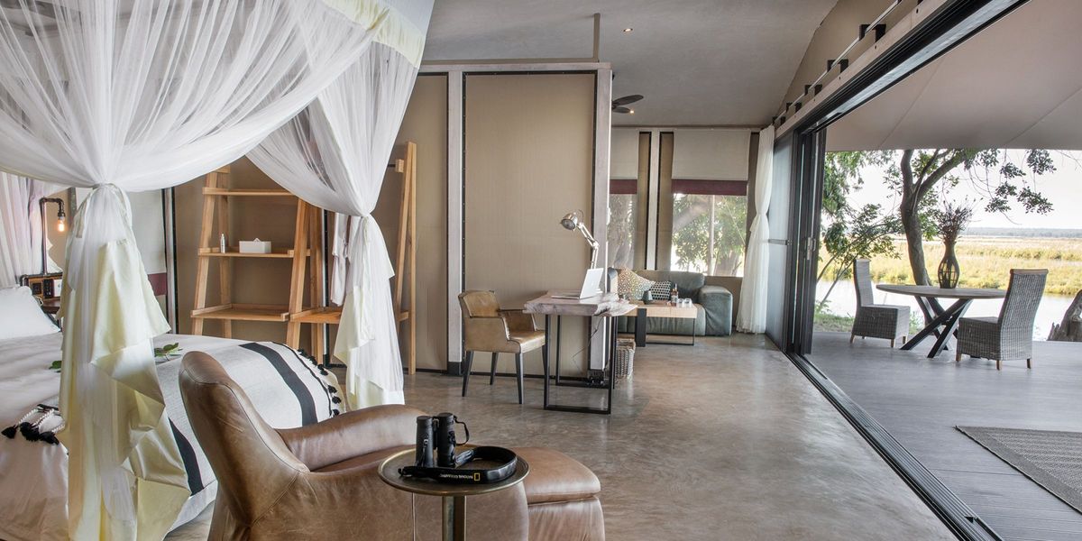 Accommodation is in eight luxurious white Bedouin style tents, positioned along the riverbank. Each tent has a private open-air en-suite bathroom. From the loo with a view, to the steaming hot shower, the honeymoon tent offers a bathtub worth marrying for. Each tent has its own personal Muchinda butler to attend to guests every whim.