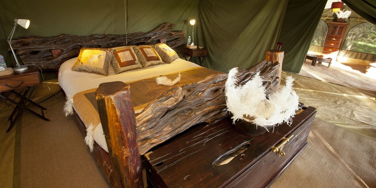 Sala’s Camp offers space, comfort and great views as well as an amazing safari experience. We can accommodate up to 18 guests in seven luxury tents including a spacious honeymoon tent, which can also accommodate a family of up to four. The Camp’s interiors are elegant and comfortable. All rooms have en-suite bathrooms with hot showers, baths, running water and flushing toilets. Our electricity is solar-powered and there is a standby generator for refrigeration and charging devices. Typically, after an exhilarating game drive, return to relax on your deck by your private plunge pool or meet up for sundowners by the campfire before enjoying dinner served under the stars.