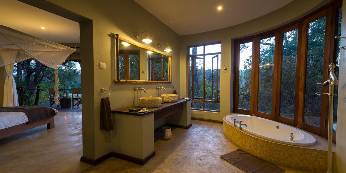 The bush chalets are luxurious and spacious with contemporary furnishings, some crafted from locally-sourced materials. They are flooded with natural light, giving you the sense of being in the forest without compromising your comfort and privacy. There is also an outdoor shower with a large rain shower where guests can enjoy the sensation of bathing under a waterfall. The shower is open to the surrounding bush with stone-clad walls for privacy.