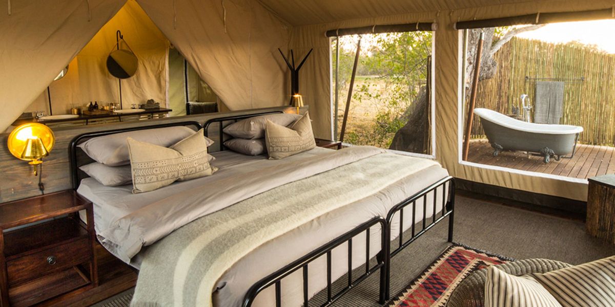 Little Machaba is a traditional safari-style camp in the game-rich Khwai concession in the northeastern region the Okavango Delta. While it shares the same island as Machaba Camp, it is a much smaller, more intimate camp that is also built on raised decks. The oversized tented deck area forms the social hub of the camp. You can swap stories at the bar, relax in the lounge or gather around the large fire pits to swap stories, fueling the feeling of being on an authentic African safari in the bush.