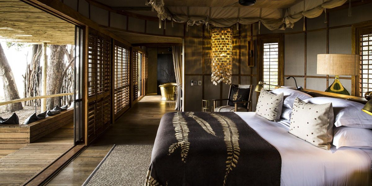 The eight spacious tents afford sweeping views over a floodplain teeming with wildlife. The sitting room, separate bedroom and bathroom, indoor and outdoor showers and bathtub with copper and brass fittings all contribute to Wilderness Safaris' ideal of responsible luxury.
