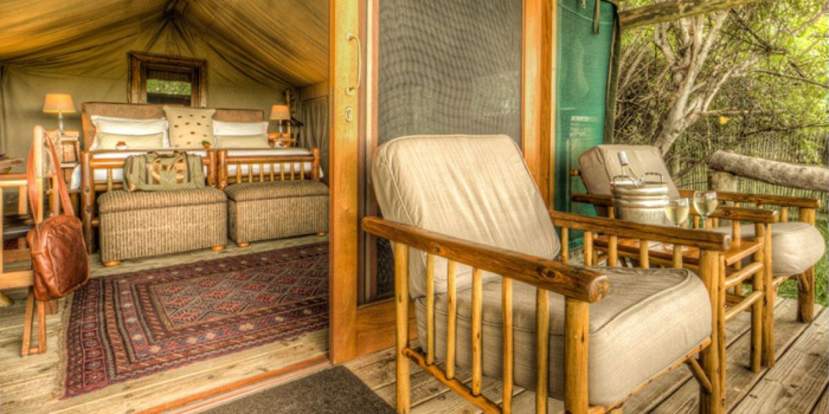 As one of Botswana's very first safari camps, the owners have beautifully preserved its original African bush camp character while providing guests with every comfort. Each tent, shaded by the Kigelia trees, is tastefully furnished with comfortable beds and en-suite facilities. The stylish main buildings extend into the Khwai River and are set on raised platforms to maximize the views over the surrounding lagoons and islands. Constructed of local timber, reed and thatch the main area is comprised of an elegant lounge containing a comprehensive library, dining room, expansive sundeck, plunge pool, sala with day bed and a fire-deck set under giant Jackalberry trees. The kitchen is renowned for its traditional safari fare served with a Pan-African touch, all accompanied by excellent South African wines.