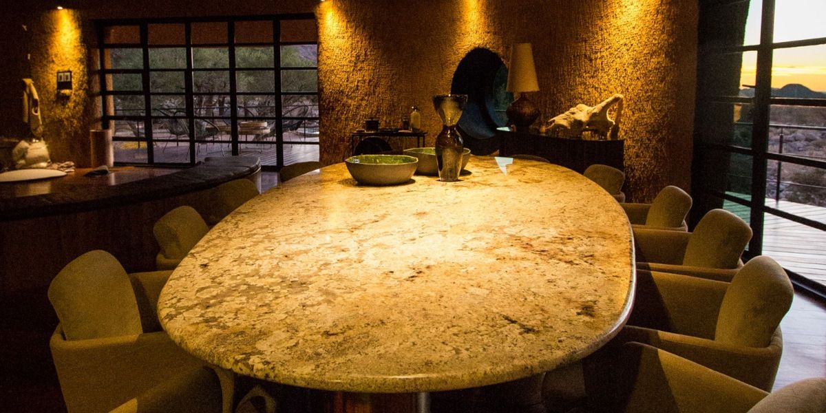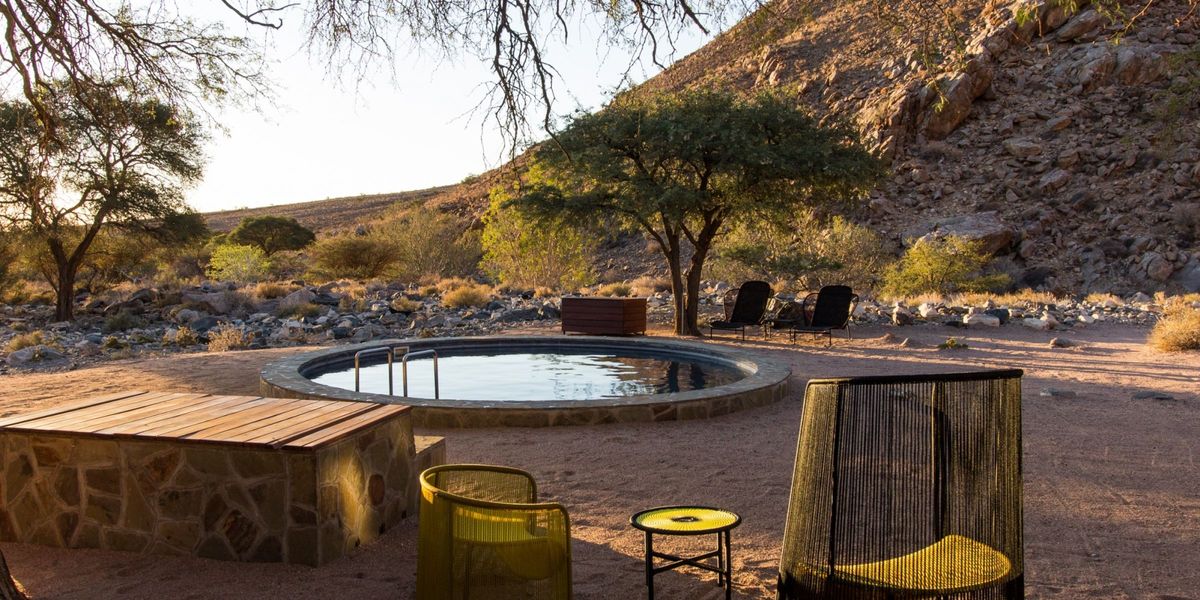 The Nest is tucked away in a lush valley on the private Namib Tsaris Conservancy, and it backs up against the great escarpment in the Namib Desert. This valley is a true desert oasis, boasting seasonal natural water pools and falls, and this makes it a magnet for the game moving through the area. A floodlit waterhole provides exciting and varied desert wildlife viewing as well as incredible birding. The villa has three private en-suite double bedrooms as well as an additional en-suite children’s room, so it can comfortably accommodate a group between four to seven guests. Guests are hosted by a private butler, renowned gourmet chef and a top naturalist guide.