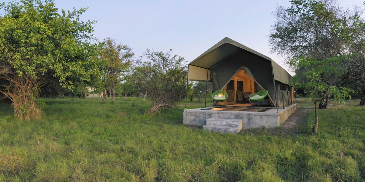 Shoebill Island Camp is hidden away in a thicket perched on a low rise deep in the enormous Bangweulu Swamps of northern Zambia. Bangweulu is a 3,800 square mile wetland of global importance, home to significant numbers of birds and mammals. Shoebill Island Camp has just four safari tents with en-suite bathrooms and a private verandah, all with views across the vast floodplain. The bathrooms have big showers, plumbed hot and cold water and flush toilets. The camp has a large, open sided dining room and bar.
