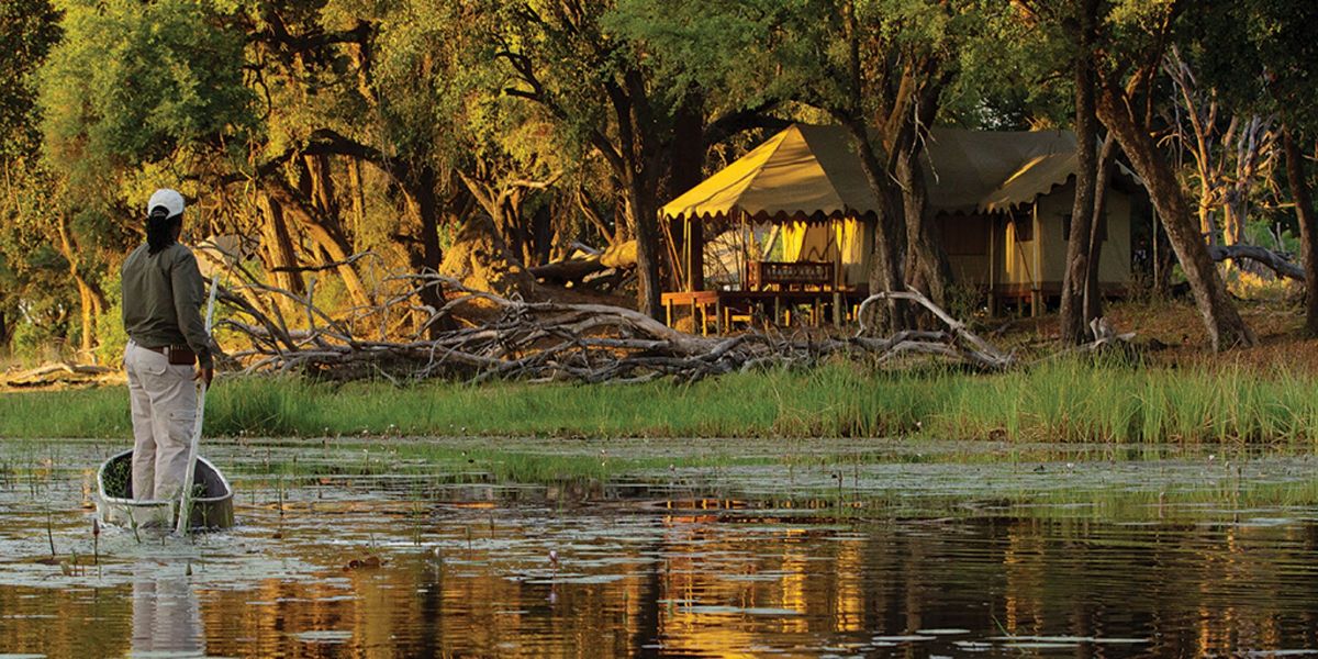 Duba Explorers Camp is a wildlife connoisseur’s getaway, situated on an island in the northern reaches of the 33,000 hectare Duba concession and surrounded on all sides by pristine Okavango Delta. The Duba Plains Concession is a prime private safari area, free from all signs of humanity other than a few small-scale safari operations. It's set in a very pretty landscape of dry mopane woodland and open grasslands bordering seasonal floodplains and permanent river channels to the south, inhabited by abundant wildlife. This intimate camp, with its own private traversing area, consists of five expedition-style tents of light airy canvas on slightly raised decking, each with views of the surrounding floodplain. Children aged 8 and above are welcome.