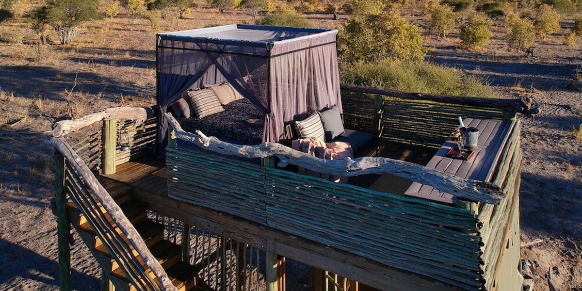 Skybeds is located deep within the Khwai Private Reserve. As the name suggests, this is no ordinary safari camp. Each “room” is actually a three-story raised platform, overlooking the wildlife-spotted plains of Khwai. Charmingly rustic yet perfectly stylish, you’ll find a bathroom with flushing loo on the first floor, a dressing area, and the ultimate cherry on the top floor - an enormous double bed, draped in white linens and a feather duvet that's completely open to the stars. With only three Skybeds, the camp accommodates just six guests making it one of the most intimate camps in Botswana.