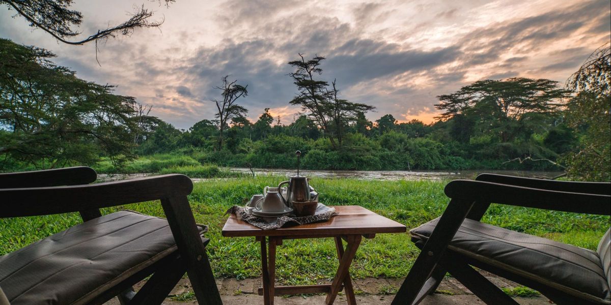 Ishasha Wilderness Camp's Ntungwe River setting and authentic safari style are a bit rare for Uganda. Guests can take advantage of the setting and birdwatch from their verandahs.  This is also the only good camp in this southern section of Queen Elizabeth National Park for those seeking to spend time viewing the famed tree climbing lions, among the general wildlife like kob, elephants and topi.