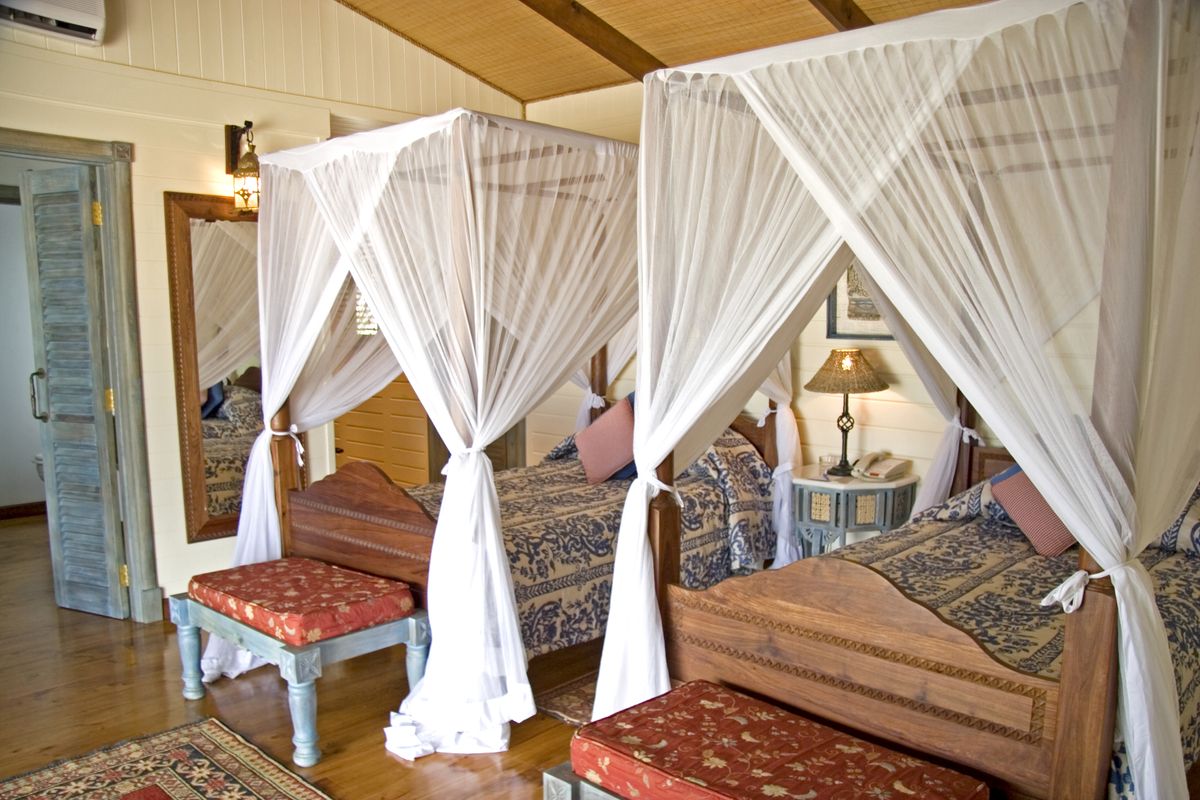 There are a total of 12 thatched chalets with private plunge pool and en-suite bathrooms fitted with indoor shower and separate bath as well as a private outdoor shower. All chalets are beautifully furnished and are equipped with air conditioning, outdoor hammock, ceiling fans, fully mosquito screened, hair dryer, mini bar, personal electronic safe, satellite TV and the convenience of tea/coffee making facilities. Chalets are set separately from the main building where you will dine on sublime local seafood fare, relax at the swimming pool and enjoy exotic cocktails at the bar.