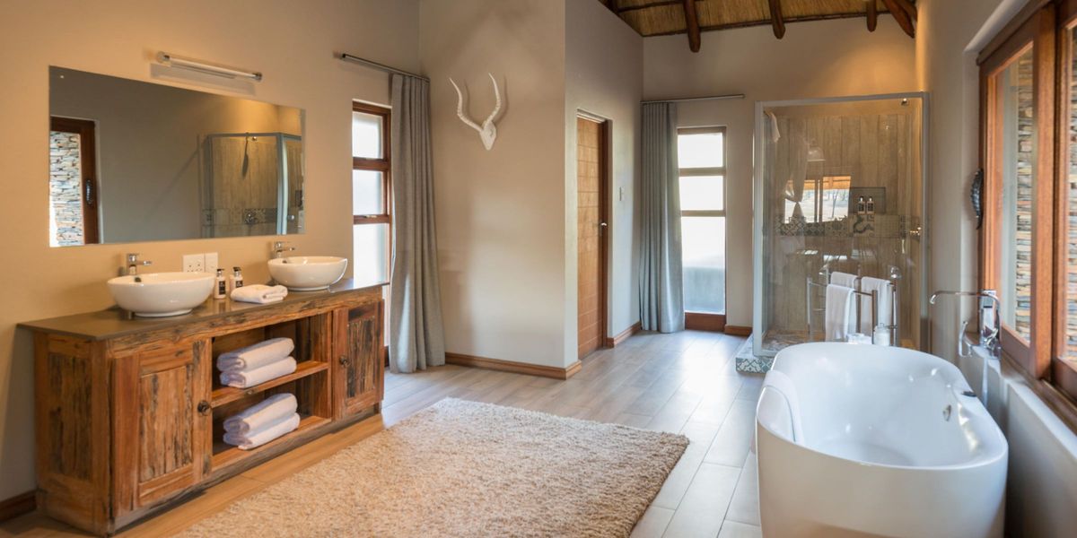 There are thirteen suites, nine of which face the waterhole in front of the lodge, and four of which are remotely located within the bush. Each has a bathroom en-suite, with shower, as well as a private outdoor shower and verandah. Amenities include a mini bar, electronic safe, hairdryer, air conditioning, mosquito net and tea/ coffee making facilities.