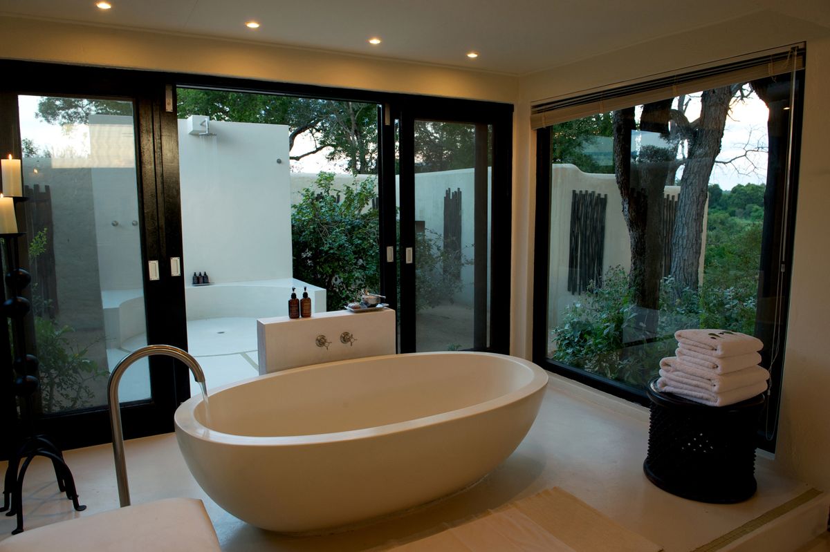 The carefully designed Lodge comprises six spacious, privately situated villas, each with a lounge, heated swimming pool and an en-suite bathroom with an enclosure for the outdoor shower - pure luxury in the middle of the wild bush. Amenities include kin bed, en-suite bathroom, indoor and outdoor shower, private viewing deck, private plunge pool, lounge with fireplace, A/C and ceiling fan, in room refreshment bar and safe. Breathtaking views of the Sabie River, which has flowing water all year around, can be viewed through the oversized windows of your villa or from your private viewing terrace. Baby elephants bathing in the river, zebra, gnu and the large Nile crocodile are the only neighbors you shall see.