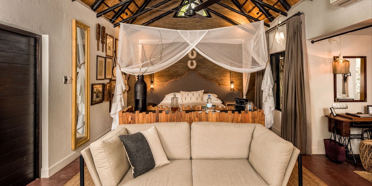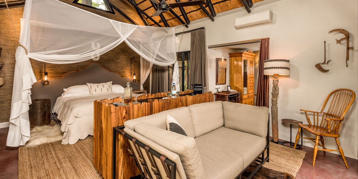 With its classic vintage styling, this exclusive lodge comprises eight opulent thatched suites, each with full bathroom en-suite and private alfresco shower nestled under majestic indigenous trees. World-class cuisine is served on wooden thatched decks built alongside the Msuthlu riverbed, in the open air “boma” or in the “farmhouse kitchen”.