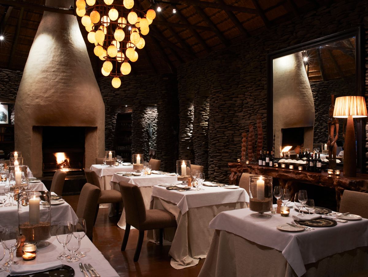 The lodge was inspired by the ancient boulders on which it rests and its temperature-controlled wine cellar – featuring an award-winning collection and personalized tastings – was built around some of the organic-shaped rocks found on the site during construction. These shapes are echoed throughout the design of this contemporary sanctuary in the bush.