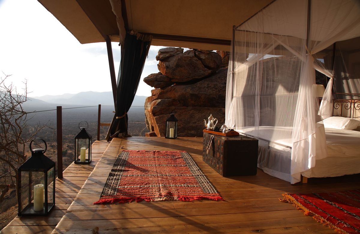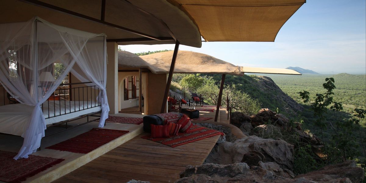 Perched on the top of the Kalama mountains with a 360 view of Northen Kenya all the way to snow-covered Mount Kenya, Saruni Samburu is introducing a fresh concept to a well-known safari destination. Built on the pristine land owned by the Kalama Wildlife Conservancy, it is only seven kilometers - and a 20 minute exciting game drive - away from the Northern border of Samburu National Reserve, a celebrated elephant sanctuary. The lodge offers a first-class safari experience in a beautifuly pristine environment, far from the beaten tracks and very close to the wildlife.