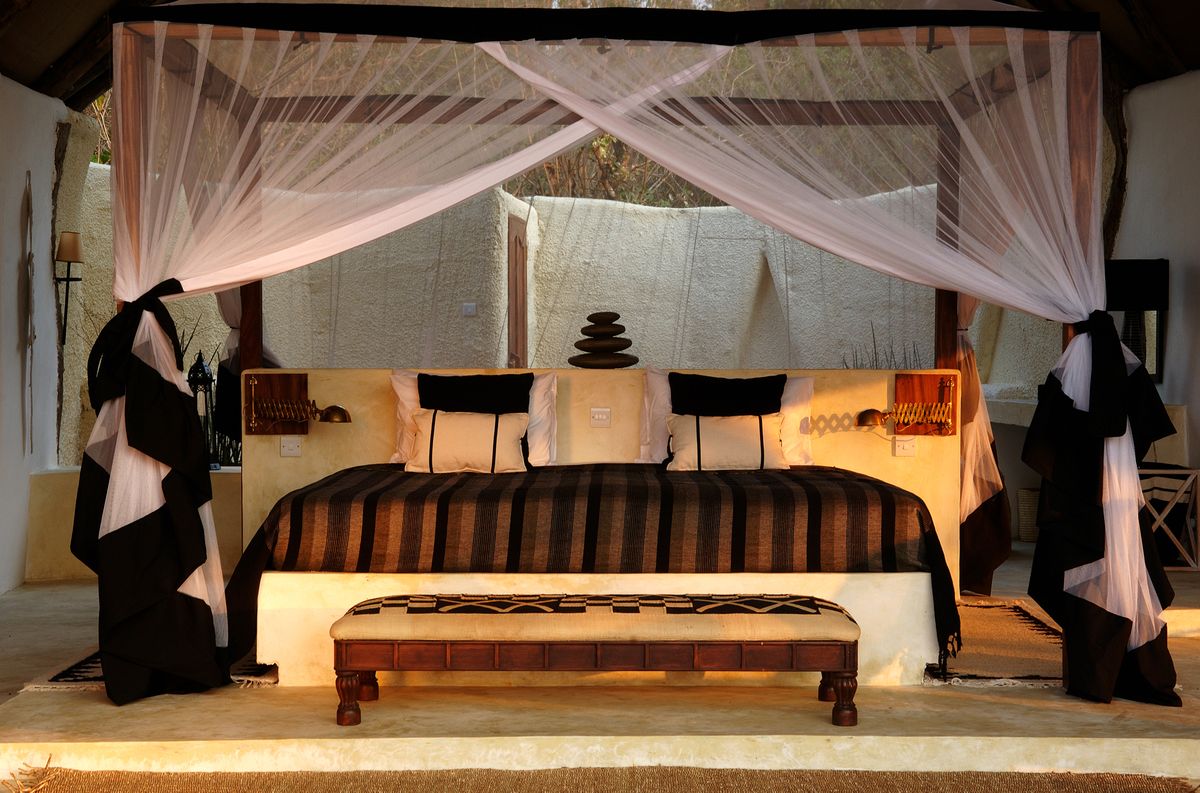 With just four rooms, Kiba Point is the smallest camp in the Selous. The rooms are open-fronted and all have en-suite bathrooms, with hot and cold running water, flush toilets and indoor and outdoor showers. Plunge pools are set into all of the room verandas and there is also a swimming pool in the large main mess.