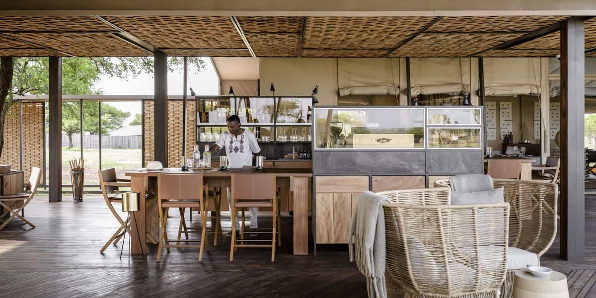 Featuring nine tented suites set close to the ground, the camp style offers modern interpretations of campaign furniture evoke the romance of East African adventures. Each suite offers sweeping views, a meditation deck, fitness area and outdoor sala with daybeds. They also boast a beautifully curated kitchenette and dining area. In the main lodge, there’s a separate pool area, two intimate dining rooms and an open-plan bar and lounge – all adding to Sabora’s understated look, which emphasizes tailored luxury. Natural materials bring the savannah effortlessly inside, creating a seamless immersion into the land.