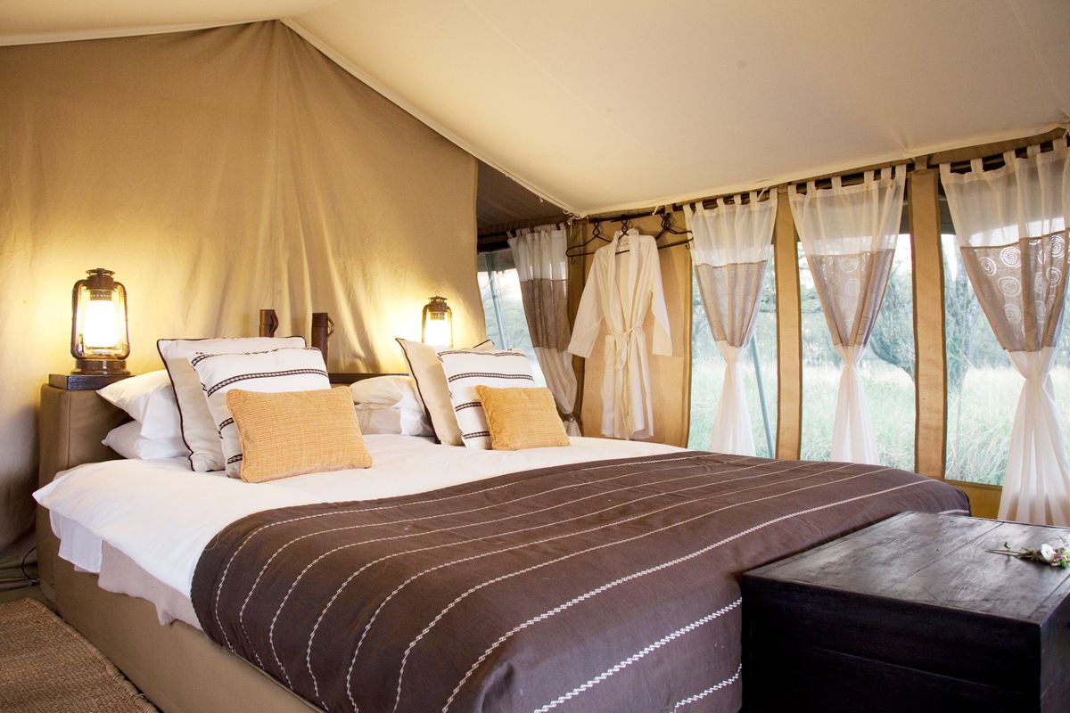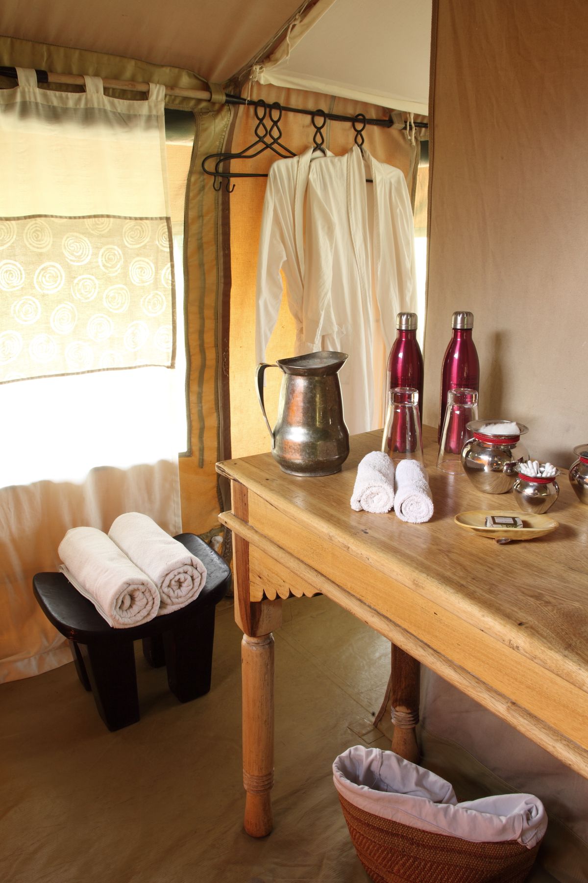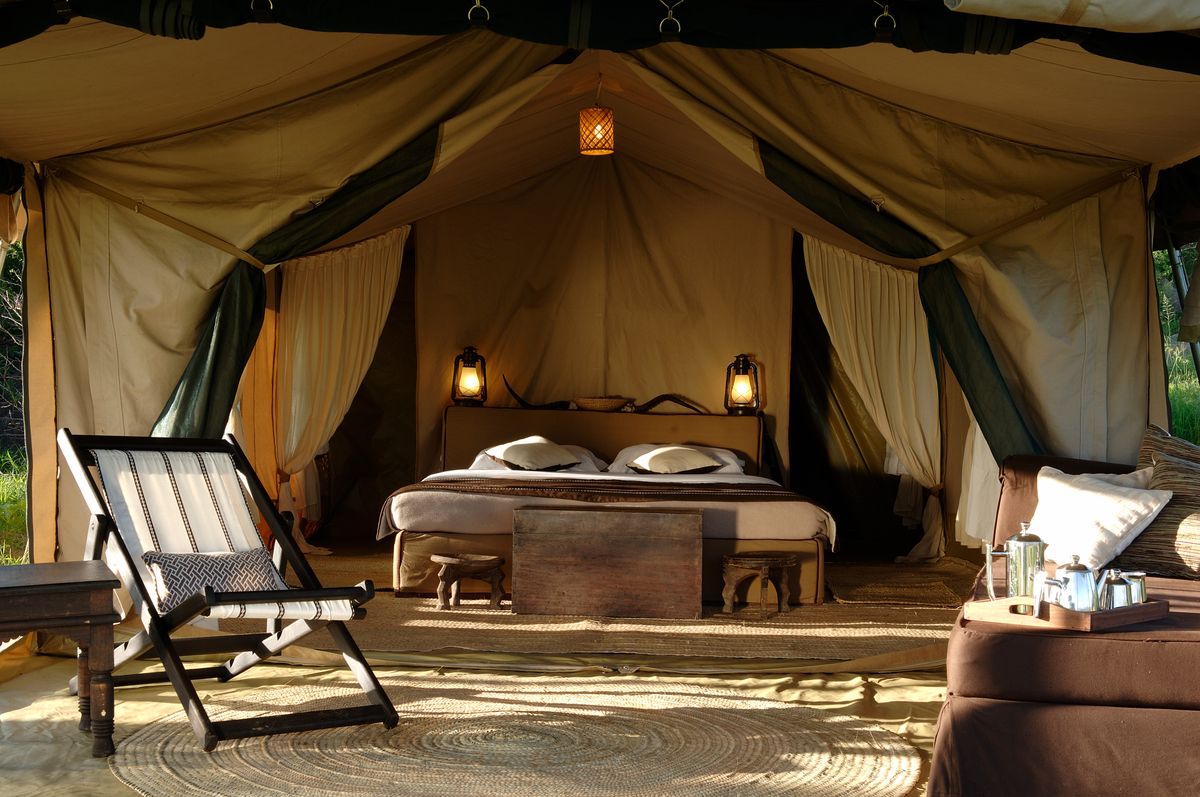Dunia Camp embraces the philosophy of leaving the lightest possible footprint on the earth. Weathered wood, sturdy canvas and elegant linens make the mess tent comfortable and atmospheric, while brass hurricane lanterns add a flicker of traditional charm. Settle into one of the old leather armchairs and watch as the sun drops behind the iconic granite outcrops before enjoying dinner in the beautiful mess tent or outdoors under the stars.