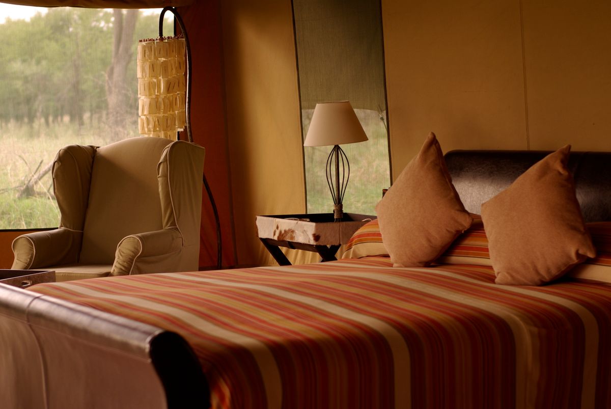 Each spacious tent is very comfortable and outfitted with a large single or king-size beds, 24-hr solar lighting, and en-suite bathrooms, flush toilet and a great safari shower. The mess tent is beautifully furnished in contemporary style. In the evening, guests gather around the campfire for sundowners before retiring for dinner under chandeliers hosted by the camp manager.