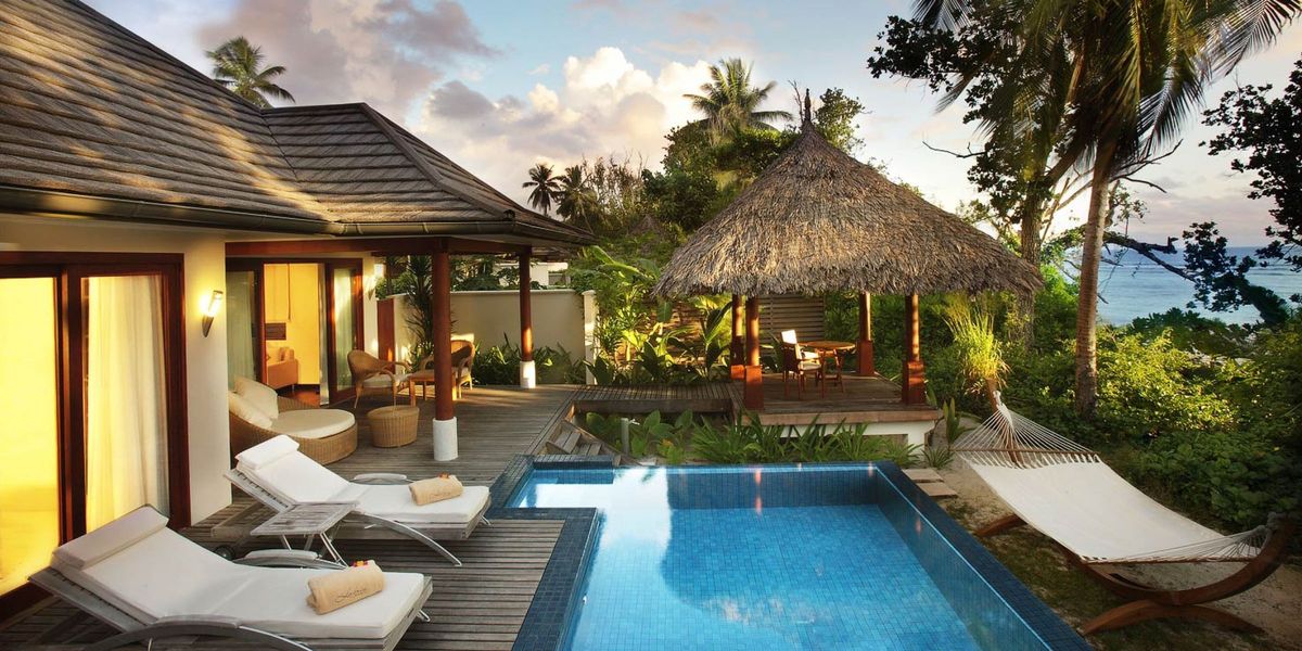 Hilton Labriz Silhouette, Seychelles - a resort for guests with an urge for the spectacular. Stunning beach villas allow guests to wake up to views of sunrise across the Indian Ocean. Tucked away discretely among the jungle vegetation, these villas are steps away from Silhouettes white sand beach and the azure waters of the Indian Ocean. For those seeking extra luxury, six of these Beach Villas feature a private plunge pool.