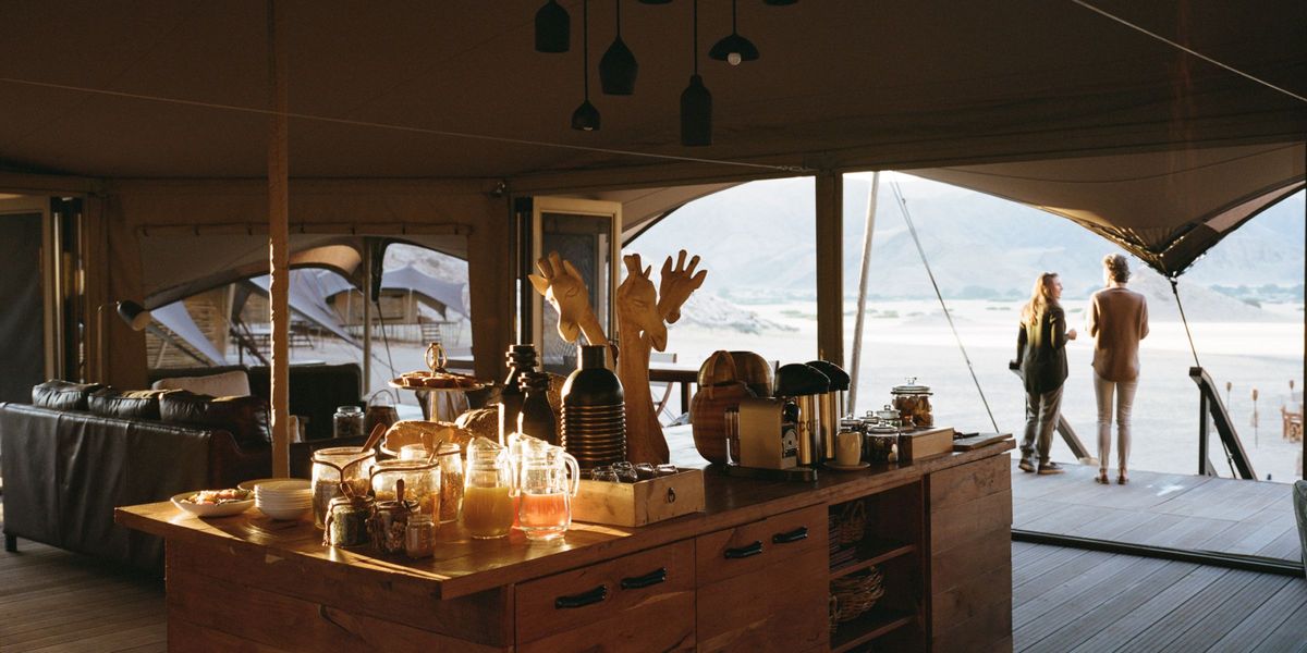 Set in this remote vastness, Hoanib Valley Camp is a joint venture between the local communities and the Giraffe Conservation Foundation, the world’s only Africa-wide giraffe conservation organisation. The camp is an elegant, intimate affair that immerses you into the wilds of the desert. Days are spent tracking desert-adapted elephant, giraffe and endangered rhino, visiting local villages, and nature walks, before retiring to your private veranda to marvel at the magnitude of your surroundings. The Hoanib is one of the 12 ephemeral seasonal rivers in the west of Namibia, where it was the border between northern Damaraland and Kaokoland. It has been called the 'last true wilderness areas in Namibia'.