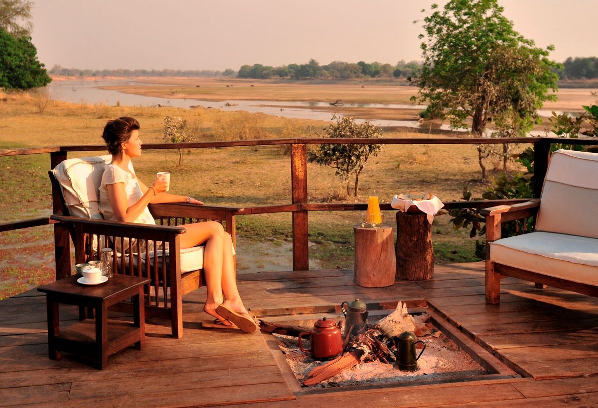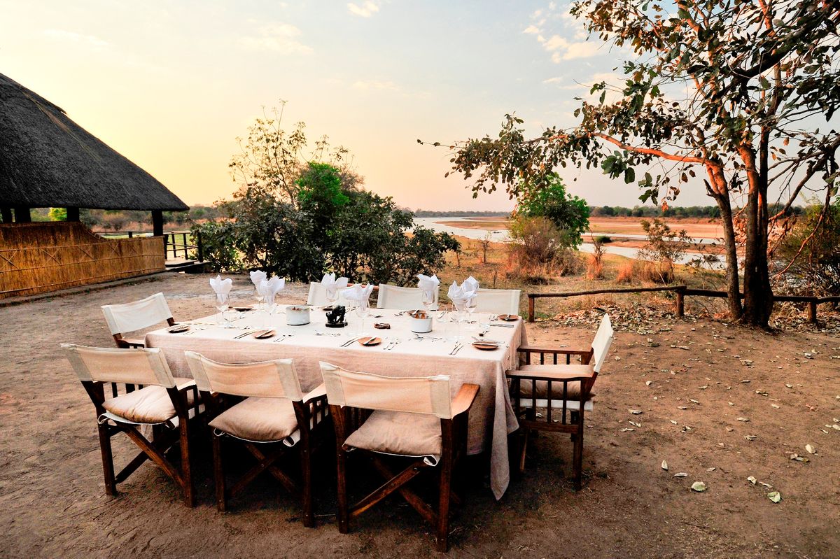 There are four spacious, traditional safari tents under shady thatched roofs, each with an en-suite, open-air bathroom. A lovely thatched chitenje (bar and dining area) acts as the center of camp where guests can gather. It is set upon a wooden deck overlooking the grazing lawn that leads down to the two rivers and is a perfect spot in which to relax and watch the wildlife that wander by to drink from the rivers.